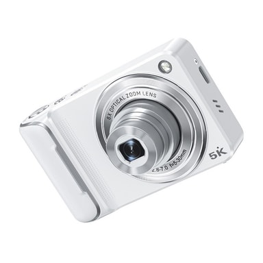 6X Optisk Zoom Digitalkamera - HD Selfie Dobbel Linse Mini Videokamera med Berøringsskjerm Hvit