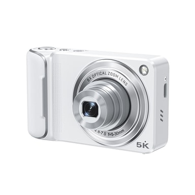 • 6X Optisk Zoom Digitalkamera - HD Selfie Dobbel Linse Mini Videokamera med Berøringsskjerm Hvit