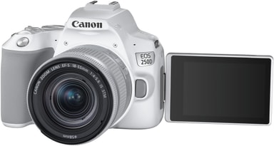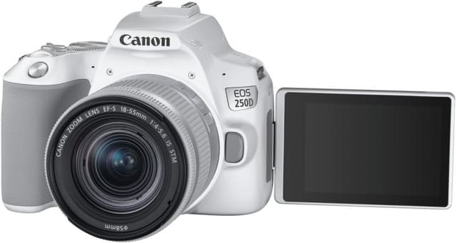 Canon EOS 250D er et ultralett og brukervennlig systemkamera som gjør det enkelt å ta stillbilder og filme videoer av høy kvalitet. Når det gjelder brukervennlighet og funksjoner, er dette kameraet egnet for nybegynnere innen fotografering eller videografi, men også for mer avanserte entusiaster. Berøringsskjermen gjør det enkelt å bruke: Ta bilder og fokuser ved hjelp av kameraets berøringsskjerm. Skjermen kan vippes sidelengs og forover, noe som gjør 250D til et flott kamera også for twitchere. Med WiFi og Bluetooth LE er det enkelt å overføre bilder fra kameraet til en mobil enhet for deling.
