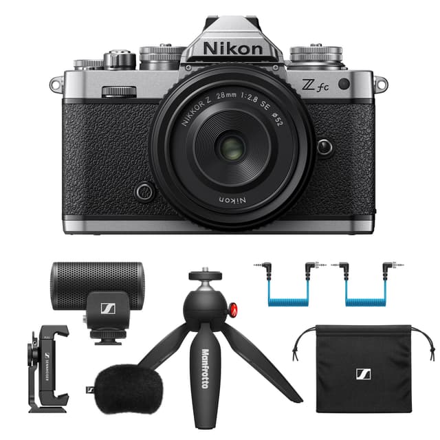 Speilløst systemkamera med Nikon Z 28mm f/2.8 SE. Fang ikoniske øyeblikk med en unik vintage-stil med Z fc systemkamera fra Nikon. Z fc har et klassisk, taktilt design kombinert med moderne Z-serie teknologi. Dette speilfrie digitalkameraet i DX-format er basert på det svært allsidige Z-festet. Utstyrt med en vippbar LCD-skjerm med variabel vinkel, gir dette kompakte 4K-kameraet enestående bildekvalitet for bilder og video. En 20,9 MP DX CMOS-sensor parret med en EXPEED 6-prosessor gir høy følsomhet, rask total ytelse og suveren bildekvalitet, og Z fc støtter også UHD 4K videoopptak. En vippbar LCD-skjerm med variabel vinkel gjør den ideell for vlogging. Den har også autofokus med øyedeteksjon og innebygd stereomikrofon, ekstern mikrofonkontakt og live stream. Du kan til og med sende bilder til telefonen din via Nikon SnapBridge-appen.