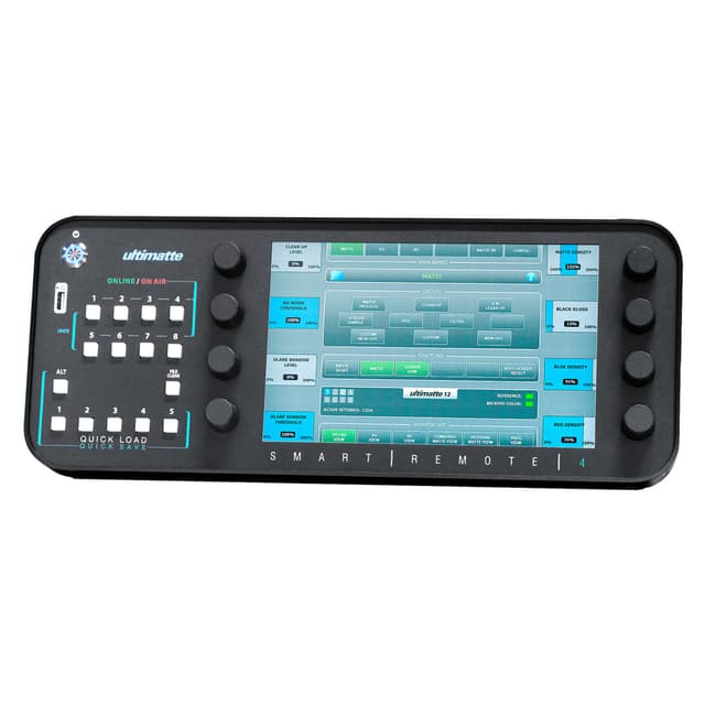 Denne fjernkontrollen lar deg kontrollere opptil 8 Ultimatte-enheter via Ethernet. Det store skjermområdet, justerbare stativet og separate lysstyrkekontroller for skjermen samt knappeoppsettet gir en ergonomisk, brukervennlig opplevelse. Videre kan ""Monitor Out Views"" nås fra alle menyene for rask og enkel betjening av viktige funksjoner.