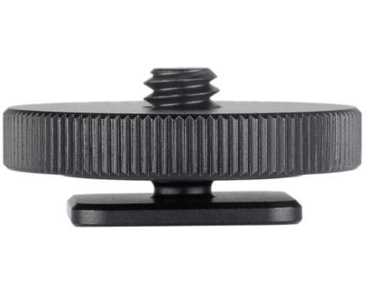 Standard blitssko med 1/4 han-gjenger på toppen. Passer for montering av stativtilbehør i blitsskoen på ett kamera som for eksempel Leofoto armer.