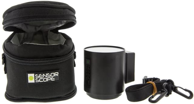 Delkin SensorScope Single med bæreveske lar deg sjekke sensoren din for å se om den trenger rengjøring. SensorScope ser ut som et kameraobjektiv, og den lar deg se inn i kameraet for å inspisere sensoren din. SensorScope er bærbar og gir 5x forstørrelse og 4 LED-lys, som er fokusert for å belyse inspeksjonsfeltet fullstendig.