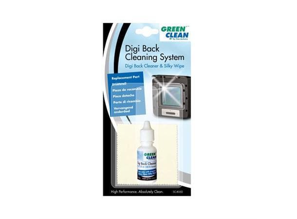 Rengjøringssett for digitale bakstykker bestående av 1x 15 ml rengjøringsvæske og 1x silke rengjøringsduk. Sørger for to-rens for å fjerne alle typer støv, smuss og forurensning. Rengjøringsvæsken inneholder ingen alkohol eller rengjøringsmidler, men kan løse opp olje / oljeholdige stoffer. Fjernes sakte for å gi god tid til rengjøring med silkeklut.