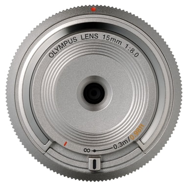 Kombinert deksel for kamerahuset og fin vidvinkel i samme slengen. En brennvidde tilsvarende 30mm åpner for mange muligheter, og selv i et så lite objektiv har det blitt plass til manuell fokus.