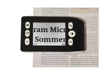 De 4 integrerte LED lysene vil alltid sørge for optimale lese- og visningsforhold, uavhengig av om det er dagslys eller på natten. Med Frezze-knappen kan du fryse ønsket bilde eller tekst-del for å se/lese det senere. Bildelagring til micro SD (ikke inkludert) lar deg lagre bilder som er tatt med det integrerte kameraet og deretter øverføre de til datamaskinen via en USB-kabel.