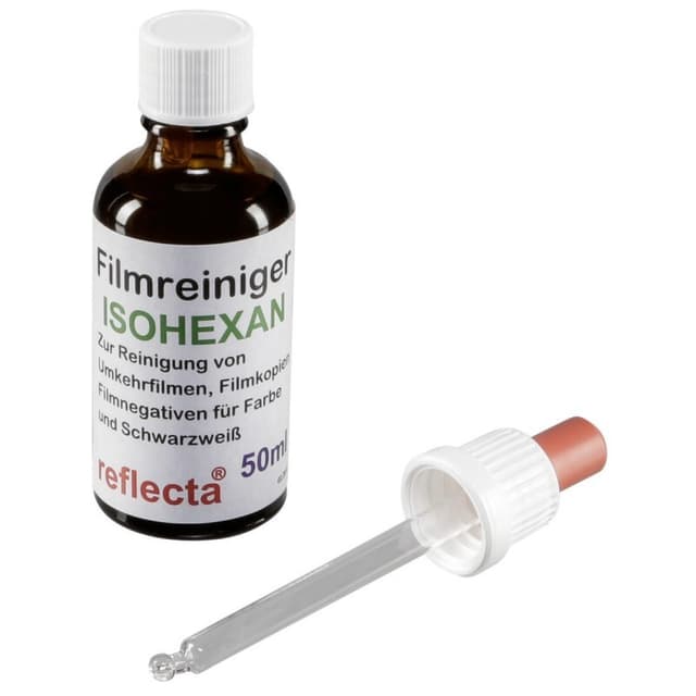 For cleaning film reels, film negatives, black and white/colour film. A film cleaning fluid with very good cleaning features, as used by film archives. Suitable for all film formats, acetate and polyester films both with and without soundtrack, can also be used for positive slides and negatives.