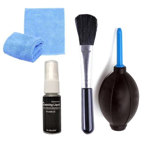 Dette settet inkluderer det grunnleggende tilbehøret som trengs for å rengjøre kameralinsen. Det som følger med er en blåsebelg som fjerner støv og skitt og en børste som fjerner det som ikke blåser bort. Noe som også følger med er en luktfri væske som er spesielt utviklet for å fjerne forurensninger og en mikrofiberklut.