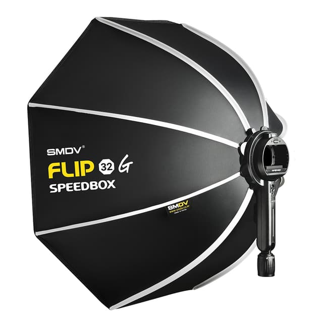 SMDV Speedbox-Flip32G er en ekstremt hurtig og enkel i bruk softboks som åpnes og lukkes på bare sekunder takket være foldemekanismen. Det splitter nye konseptet med hurtiginntrekkende diffusor, som raskt festes med adapterringen.