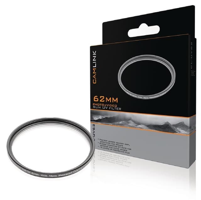 Smalt UV-filter for utestenging av uønskede UV-stråler, slik at bildene blir skarpe og klare. • ideell beskyttelse for alle kameraobjektiver • 16 lag med beskyttelsesfilm • tilgjengelig i størrelser fra 52 til 77 mm