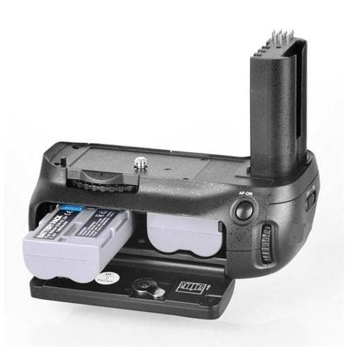 Batterigrepet har plass til 2 EN-EL3e-batterier, men det er også mulig å bruke 6 AA-batterier med den medfølgende adapteren. Enkel montering, ingen funksjoner er blokkert.