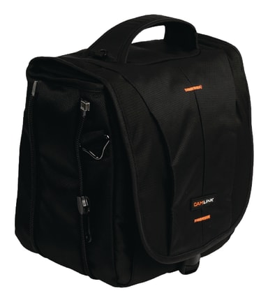 Product description: made of tapestry nylon 1260d. carrying strap. waterproof zipper. 3x dividable, foam padded inside pocket. 3x easily accessible front pocket. 1x handy back pocket. 4x foam padded divider. adjustable in size. general information: colour: black / orange. inner dimensions: 230x140x250 mm. material:tapestry nylon 1260d.