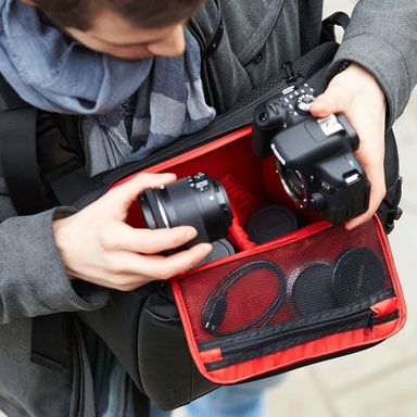 Med Canon Sling Bag SL100 kan du bære med deg et speilreflekssett til en hel dags arbeid trygt. Sling-designet gjør at du enkelt får tilgang til kamera og utstyr uten å måtte ta av deg vesken. SL100 har også regntrekk for ekstra beskyttelse. Den har plass til et speilreflekskamera, opptil tre objektiver/blits og tilbehør som nettbrett, minnekort, ekstra batteri osv.