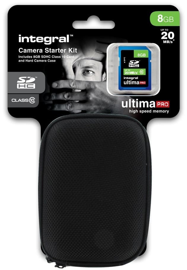 Startpakke med et 8 GB SDHC-minnekort samt et hardt og holdbart kameraetui for ditt kompaktkamera.