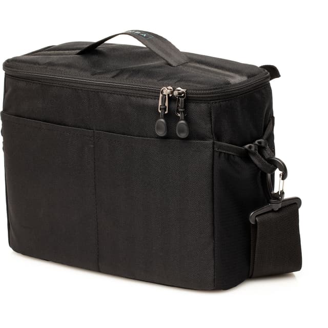 Den svarte BYOB 10 kamerainnsatsen fra Tenba er designet for å bære og/eller beskytte et kamera og utstyr i større ryggsekker, kofferter eller håndvesker. De myke ytre skallene er fleksible. BYOB 10 har plass til speilreflekskamera eller speilløs kamerakropp med opptil 4 objektiver og tilbehør, inkludert en påmontert 24-70mm f/2.8.
