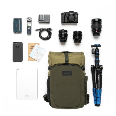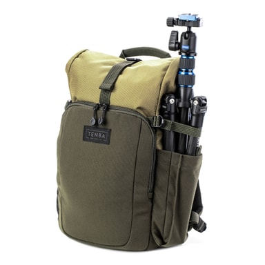 Tenba Fulton ryggsekker kombinerer tidlø s, vintage stil med moderne komfort, funksjon og kamerabeskyttelse. Deres myke, lette lerretsdesign smelter sø mlø st inn i ethvert miljø , men de har et komplett utvalg av funksjoner av profesjonell kvalitet, som sikker baktilgang til kamera, stativ/monopod-stø tte, en polstret nettbretthylse og en utvidbar rolltop å pning. 10L-ryggsekken passer til ett speillø st eller DSLR-kamera med 2-4 objektiver (opptil separat 24-70 mm 2.8), pluss iPad eller iPad Pro opptil 11 tommer (28 cm). Den passer også til DJI Mavic og andre kompakte droner. Og den ø verste rolltop-seksjonen har massevis av plass til mat, en lett jakke og annet personlig utstyr.