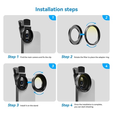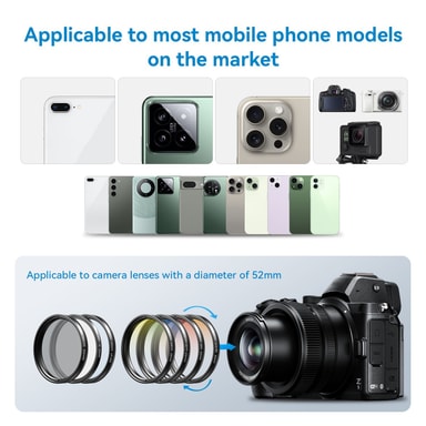 MERK: Disse filtrene er dobbeltgjengede, slik at flere filtre eller tilbehør kan stables oppå hverandre. Den robuste aluminiumrammen med tetning sikrer at filtrene sitter sikkert, og HD optisk glass gir skarpe og høy kvalitet bilder.