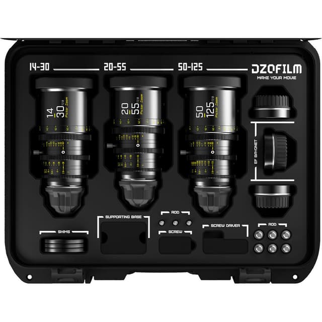 DZOFilm Pictor Cine Zoom 14-30mm/20-55mm/50-125mm T2.8 - inkluderer byttbar EF og PL mount.