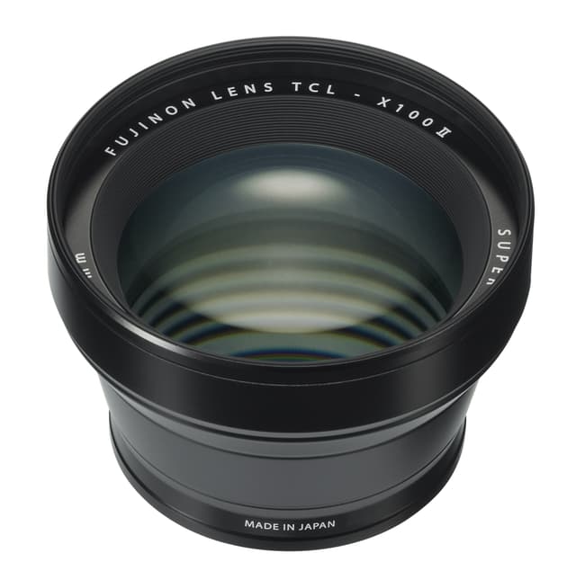 Fujifilm TCL-X100 II i sort er en Telekonverter med 1,4x for objektivet på alle X100-modeller. Den gir en effektiv brennvidde på 33 mm, noe som tilsvarer en 50 mm i 35 mm format.