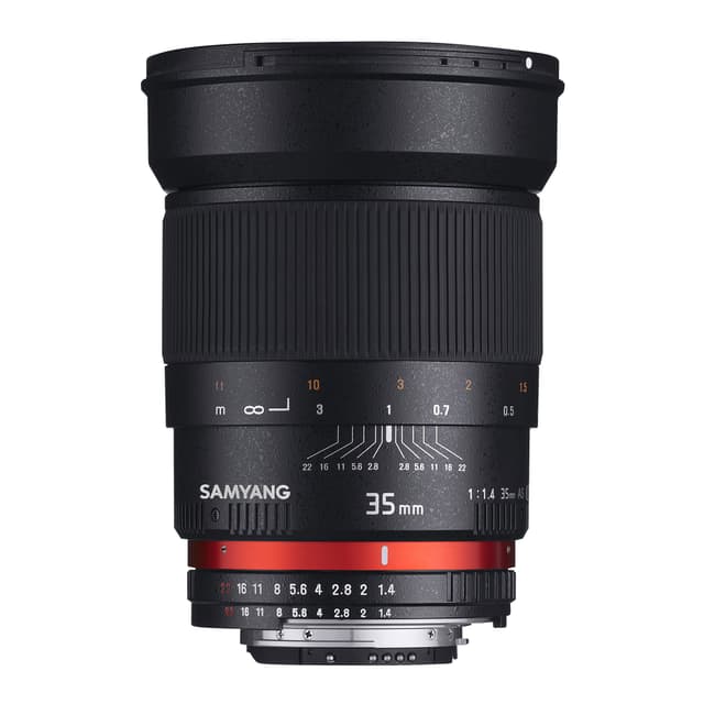Samyang 35mm F1.4 AS UMC standard vidvinkelobjektiv til APS-C og fullformat. Den optiske konstruksjonen består av12 linseelementer fordelt i ti ulike grupper, hvor to av linsenene har høy refraksjonskoeffisient slik at vekten og størrelsen på objektivet blir minimalisert. I tillegg tilyr objektivet meget gode kontraster