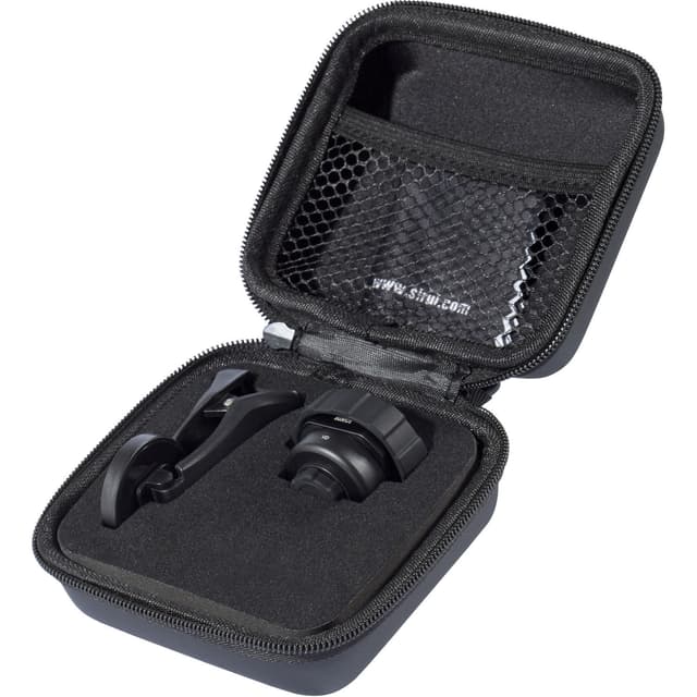 Sirui bygde denne objektivoptikken ved hjelp av tyskprodusert Schott-glass, og linsekabinettet har en aluminiumskomponent som du også finner i fly, som begge ø ker holdbarheten og opplø sningen. Optikken har også flerlags, antireflekterende belegg. VD-01 kan monteres på telefonen din ved hjelp av Siruis Mobile Lens Clip Adapter, og den kan også brukes med Siruis sirkulæ re polarisasjonsfilter og justerbart ND-filter.
