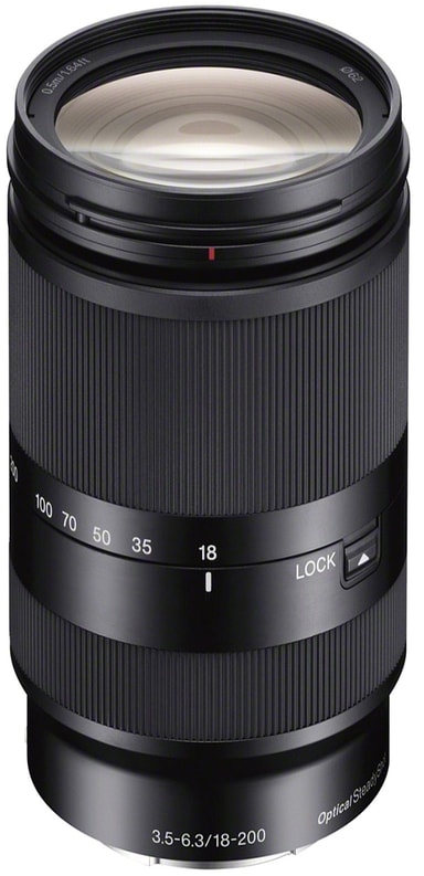 11 x forstørrelses-zoom med 18 mm vidvinkel til 200 mm telefoto. Den optiske bildestabilisatoren (Optical SteadyShot) gir utmerket bildeskarphet.