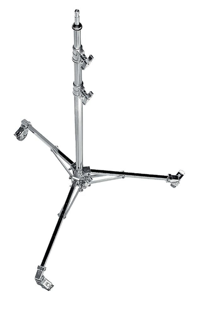 Den øverste feste-pinnen er en ""baby"" 16 mm (5/8 tommer) og fungerer med alle standard lampefester som finnes på mange populære HMI-er, LED-paneler og blitser. Hjul med brems/lås er standard på A5029.