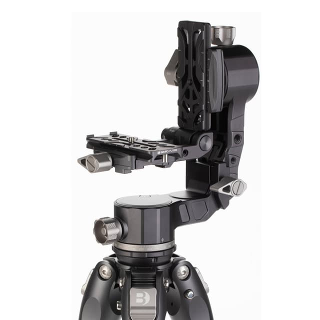 Den avtakbare armen kan foldes opp for enda mindre omfang ved oppbevaring. Når denne armen er fjernet, kan du montere kameraet til hurtigutløserklemmen på brakettarmen. Armen har også en dobbel arca-swiss klemme og plate slik at du kan bruke den som en L-formet hurtigutløserplate med hvilket som helst av Benros arca-kompatible stativhoder.