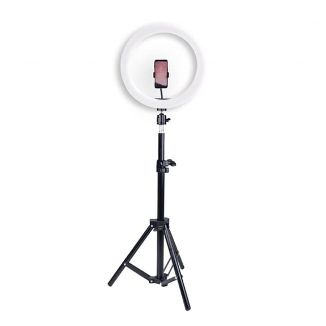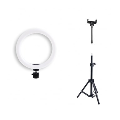 Braun VloggKit 100 har en 10,2"" (26cm) ringlampe som er utstyrt med 120 LED-lys. Effekten er på 12w. Den kan dimmes og gir den ideelle belysningen med tre justerbare fargetemperaturer. Settet inneholder et solid metallstativ, mobiltelefonholder og strømadapter. Maksimal høyde er ca. 80 cm.