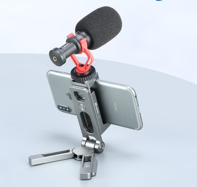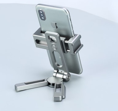 Solid og smart mobiltelefonholder i metall. Bordstativ, håndholdt, ekstra tilbehørsfester og stativmontert (Arca Swiss 1/4"").