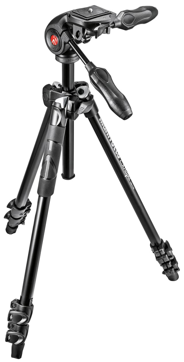 Manfrotto er et robus og lett stativ i aluminiumskonstruksjon for å holde lenge og stå støtt. 3-veis kamerahode gir allsidig manøvrering til kameraet.Les mer om produktet