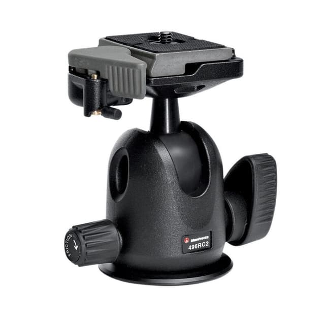 Manfrotto 496RC2 er et godt kulehode beregnet på kompaktkamera og speilrefleks. En hendel regulerer både panorering og vipping.