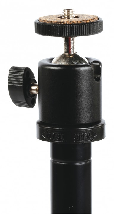 90° angle tilt head. Suitable for small sized ball heads. 2 section centre column with twist-lock mechanism. Non-skid rubber feet. Les mer om produktet
