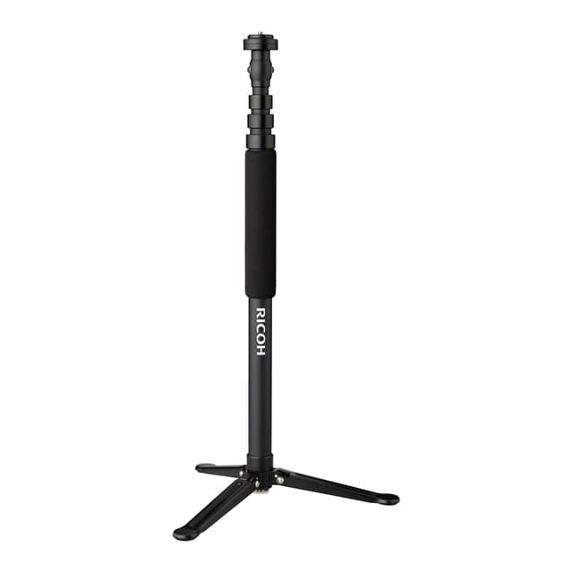 Ricoh TD-1 stativ er designet for å holde ethvert THETA-serie 360-kamera i stillestående posisjon. Den er teleskopisk justerbar i forskjellige høyder, høyde 56-152 cm, og den har en liten hurtigmonteringsplattform slik at du enkelt kan bytte mellom stasjonær og håndholdt modus. Det robuste stativet har tre sammenleggbare føtter som åpner seg for å holde det oppreist, og det støtter også en valgfri TT-1 stativvekt for ekstra stabilitet.