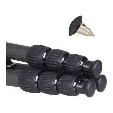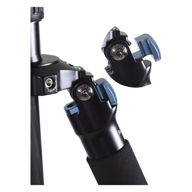Plattform med 3-punktslås gjør konverteringen fra kamera- til videostativ rask og sikker. Plattformen kan byttes ut mot en skål (inkludert) med 75mm diameter som er tilpasset for å passe sammen med nivelleringsutstyr, eller en midtpillar (370mm) for ekstra høyde (medfølger). Stativets bein har en automatisk låsemekanisme for benvinklene, og alle tre beina er skumkledde for praktisk håndtering med utbyttbare gummiføtter/spikerføtter. Den løstagbare kroken fungerer også som en skrutrekker.