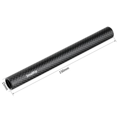 SmallRig 1872 15mm Karbonfiberrør (6"") er et par 6-tommers lange, ikke-gjengede rør med et karbonfibermønster på den ytre overflaten, som er svært stiv, lett og korrosjonsbestandig. Disse rørene er 150 mm lange og er maskinert fra hule karbonfiberrør. De er presisjonsbearbeidet for 15 mm støttesystemer og man kan enkelt feste et bredt utvalg av tilgjengelige tilbehør slikt som følgefokus, matteboxes, osv.