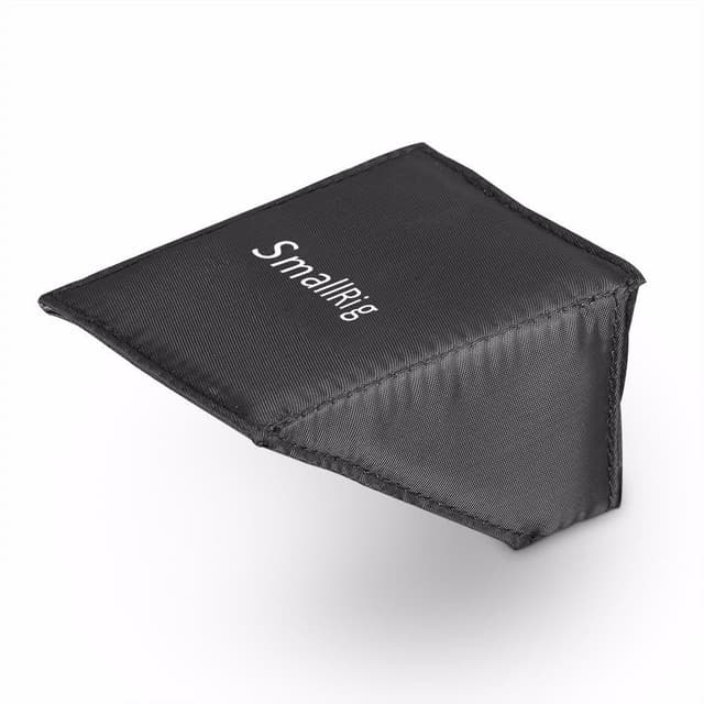 Laget i nylon, og festes med borrlås-reimer. Kantene inn mot kamera er polstret for å sikre mot skraper.