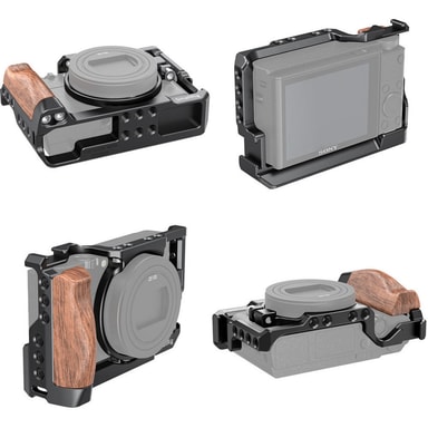 Dette spesialdesignet kameraburet fra SmallRig beskytter Sony RX100 VII eller VI-kameraet uten å hindre tilgang til kameraets funksjoner, skjermer, porter eller batteri. Kameraet monteres på buret via en frontlinseklemme som holder kameraet sikkert. Et ergonomisk håndtak på høyre side gir en behagelig gripeflate.