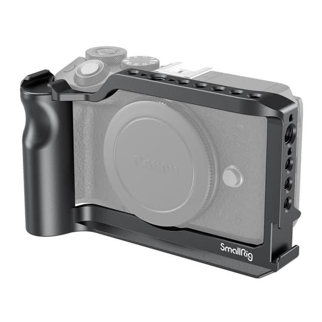 SmallRig 2515 Camera Cage for Canon EOS M6 Mark II er en formtilpasset bur spesielt designet for Canon EOS M6 Mark II. Den monteres til kameraets stativsokkel med en 1/4""-20 skrue, med anti-vri flenser på bunnplaten som forhindrer vridning. Den leveres med flere 1/4""-20 og 3/8""-16 gjengede hull som tillater montering av tilbehør. Du kan for eksempel montere SmallRig tresidehåndtak 2093 for håndholdt skyting, og feste SmallRig Cable Clamp 1822 for å beskytte HDMI-kabelen og porten. ARRI-lokaliseringshull på toppen og venstre er designet for å fungere med tilbehør som SmallRig ARRI lokaliseringshåndtak 2165 eller SmallRig Ball Head Magic Arm 2115. På toppen og venstre side har coldshoe-fester for mikrofoner eller LED-lys. Buret opprettholder full tilgang til kameraets knapper, porter og batteri. Et konturformet håndtak er innebygd i ett side av buret som gir mer komfort og grep når du bruker en håndholdt. Buret har også en innebygd Arca-Swiss hurtigutløserplate på bunnen for stativmontering.