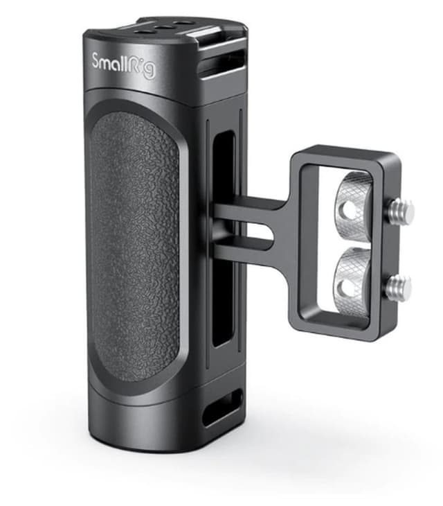 SmallRig Mini Sidehåndtak (1/4”-20 Skruer) 2916 er designet for speilløse kameraer. Håndtaket festes på siden av buret med to 1/4 ”-20 skruer. Med en Cold Shoe (blitssko) 1241 vil man få ekstra monteringsalternativer som blits og mikrofon. Håndtaket er justerbar for å passe til forskjellige burhøyder og støtter hurtigbryteren fra venstrehånds til høyrehendt gjennom den innebygde skiftenøkkelen.