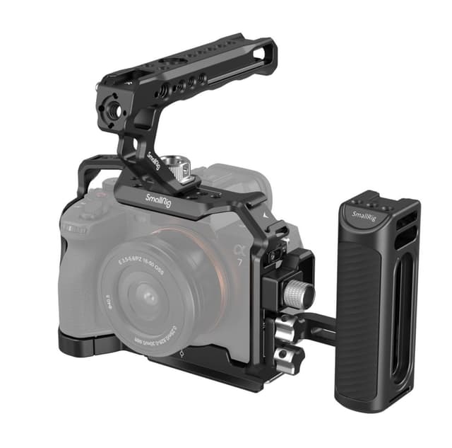 SmallRig 3669 Advanced Kit for Sony Alpha 7 IV/Alpha 7S III er designet for å redusere armbelastning og øke stabiliteten under håndholdt fotografering, samtidig som den har et bredt utvalg av tilbehørsfester. Den inkluderer et bur, en HDMI-kabelklemme, et topphåndtak og et sidehåndtak. Det øverste håndtaket føles komfortabelt og gjør det enkelt å bære og filme med lav vinkel. Sidegrepet har en silikoninnsats for bedre grep og mer stabil tohåndsskyting. 1/4""-20 gjengede hull, ARRI 3/8""-16 lokaliseringshull, coldshoe og NATO-skinner støtter monitorfeste 2294, mikrofoner, LED-lys, monitorfeste 2903 og NATO-tilbehør. HDMI-kabelklemmen, montert på venstre side av buret via en 1/4""-20 skrue og to lokaliseringsstifter, forhindrer vridning og holder kabler med en tommelskrue for å sikre stabil signaloverføring. Hull på begge sidene av buret gjør det mulig å feste håndstropper. Buret leveres med en innebygd magnetisk flathodet skrutrekker og sekskantnøkkel som letter demontering og montering.