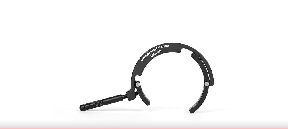 Sunwayfoto's DRH-60 fokuseringshåndtak brukes til å jevnt justere fokuset på objektiv med 58-66mm diameter. Den justeres og festes sikkert på fokuseringsringene på objektivet.