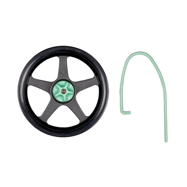 Dette slingshothjulet og sikkerhetskroken leveres opprinnelig i esken med Slingshot og er her tilgjengelig som ekstrautstyr for å erstatte tapt eller skadet standarddel.