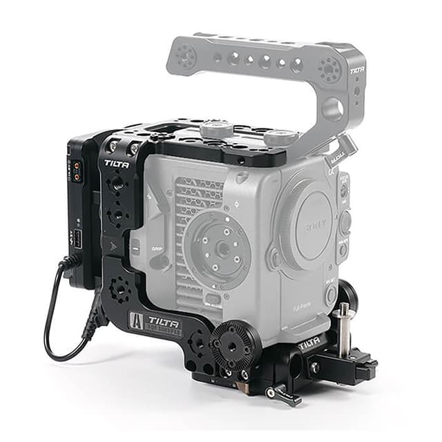 Grunnplaten har ARRI-kompatible rosetter på hver side for å feste valgfritt håndholdt tilbehør, og den integrerer 15 mm LWS stangklemmer og en innebygd linsestøtte. Grunnplaten er kompatibel med ARRI og Tilta svalehaleplater for montering og balansering av kameraet på stativ og andre støtteplattformer. Toppplaten festes direkte til kameraet ditt og gir plass til Sonys topphåndtak for FX6, samt Tilta topphåndtak for FX6 (ikke inkludert).