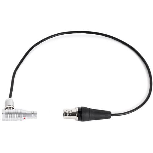 Wooden Camera Genlock Kabel til RED KOMODO kamera støtter Genlock-signaler via BNC-kontakter for å brukes med RED KOMODO-kameraet og Wooden Camera B-Box breakout-box. Kabelen er 30 cm lang og har en push-pull-låsemekanisme med en innover rettvinklet utforming for enkel tilpasning.