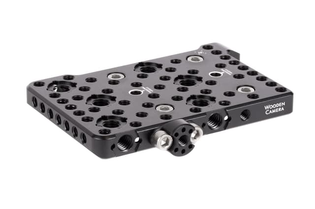 Wooden Camera Toppplate (Panasonic EVA1) festes av (4) fangede 1/4-20 skruer og har rader med 1/4-20 hull og ARRI-tilbehørsbeskyttelsen er tilgjengelig på flere steder (3/8-16 skruehull med lokaliseringsstifter tilstøtende). Original Panasonic EVA-1-håndtak kan installeres på topplaten og Panasonic LCD-montering kan installeres på siden ved hjelp av den medfølgende LCD-brakettadapteren.