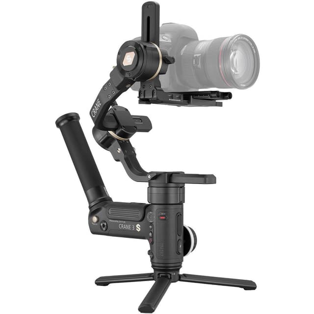 Zhiyun CRANE 3S-E Håndholdt stabilisator fra Zhiyun-Tech er en kraftig redesign av tidligere Zhiyun gimbals med tillegg av avtakbare håndtaksmuligheter, kraftigere motorer med en stor nyttelast på 6.49 kg, et oppdatert akselåssystem, ekstern kraftinngang og ViaTouch 2.0 fjernstyringssystem. Den vinklede rulleaksen på 55° lar deg tilpasse kameraet ditt uten å blokkere utsikten, og den er også modulær, slik at du kan legge til en medfølgende forlengelsesarm for å passe til større kameraer.