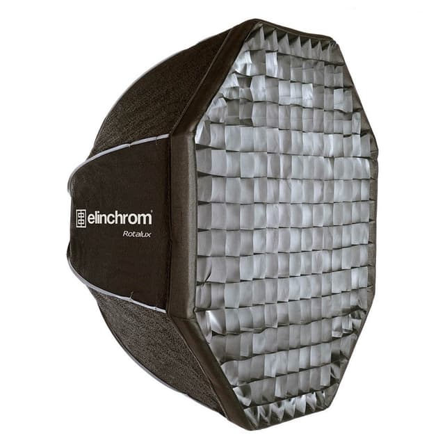 Elinchrom Rotagrid Octa 100cm, lysspredende 30°. Raster på softbox gir økt kontroll over lysstrømmen mens lysets karakter ikke endres. Softboksens myke lys forblir konstant samtidig som den blir mer fokusert takket være nettets design.