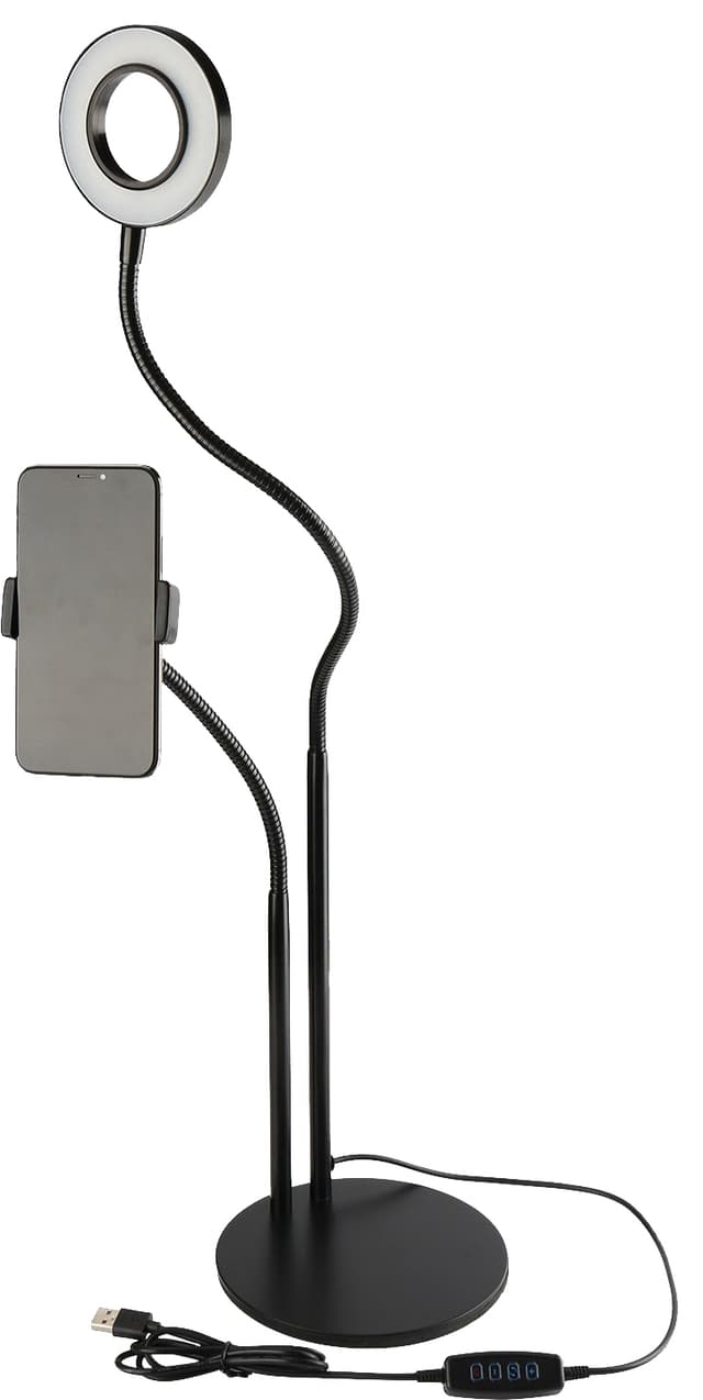 Picture Me 2in1 LED selfiering på stativ vil hjelpe deg med å skape fantastisk innhold. Den kommer utstyrt med tre farger og ti lysstyrker, slik at du alltid kan justere innstillingene etter forholdene og innholdet du skaper. Stativet kommer ellers med universalt feste, telefonfeste og en arm som vil tilpasse seg etter dimensjonene på telefonen din. Med 360° rotasjon kan du justere stativet etter dine behov. Stativet fungerer godt som et frittstående telefonstativ, og kan også benyttes som en frittstående lysring.