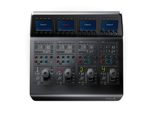 Blackmagic ATEM Camera Control Panel er en kompakt fjernkontroll for kameraet som er designet for å kontrollere opptil fire forskjellige URSA Broadcast, URSA Mini, Blackmagic Studio eller Blackmagic Micro Studio kameraer.
